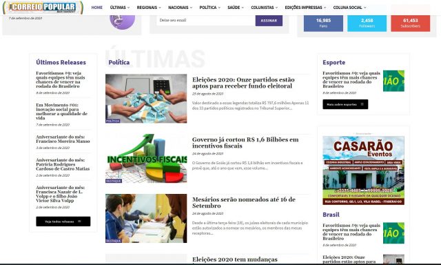 Website do Jornal Correio Popular em Itaberaí – GO.